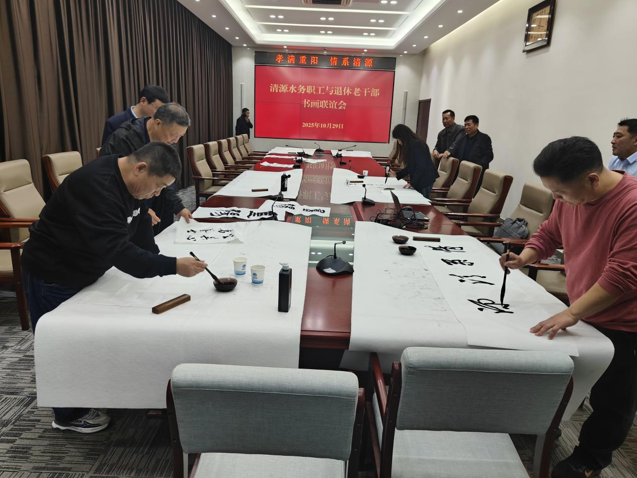 ? ? ? ?活動第二站,來到聚源公司文山泵站開展書畫聯誼活動,活動室內墨香四溢,長桌鋪展,宣紙備齊,公司書畫愛好者與老同志們一同揮毫潑墨,即興創作。大家寫下對企業和生活的感悟,既展現了清源人對文化的熱愛,亦營造了和諧融洽的交流氛圍。